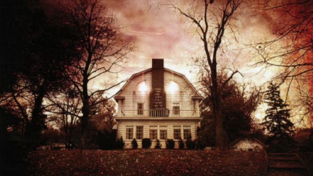 Os Lutz compraram a casa em 1975, onde Ronald DeFeo matou seis familiares em 1974 com um rifle. Eles ficaram apenas 28 dias, relatando vozes, lodo negro saindo das paredes e levitação do filho. O crime tem processo judicial público; os Lutz saíram sem pagar a primeira prestação da hipoteca.